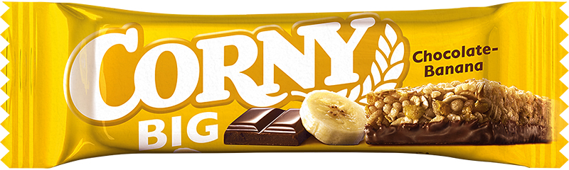 Om du går bananas för banana! Corny BIG Chocolate-banana är en muslibar i större format full med läckra ingredienser. En smarrig banan- och chokladbar med rostade fullkornsflingor, söta knapriga bananbitar och en botten täckt av ett generöst lager god choklad.