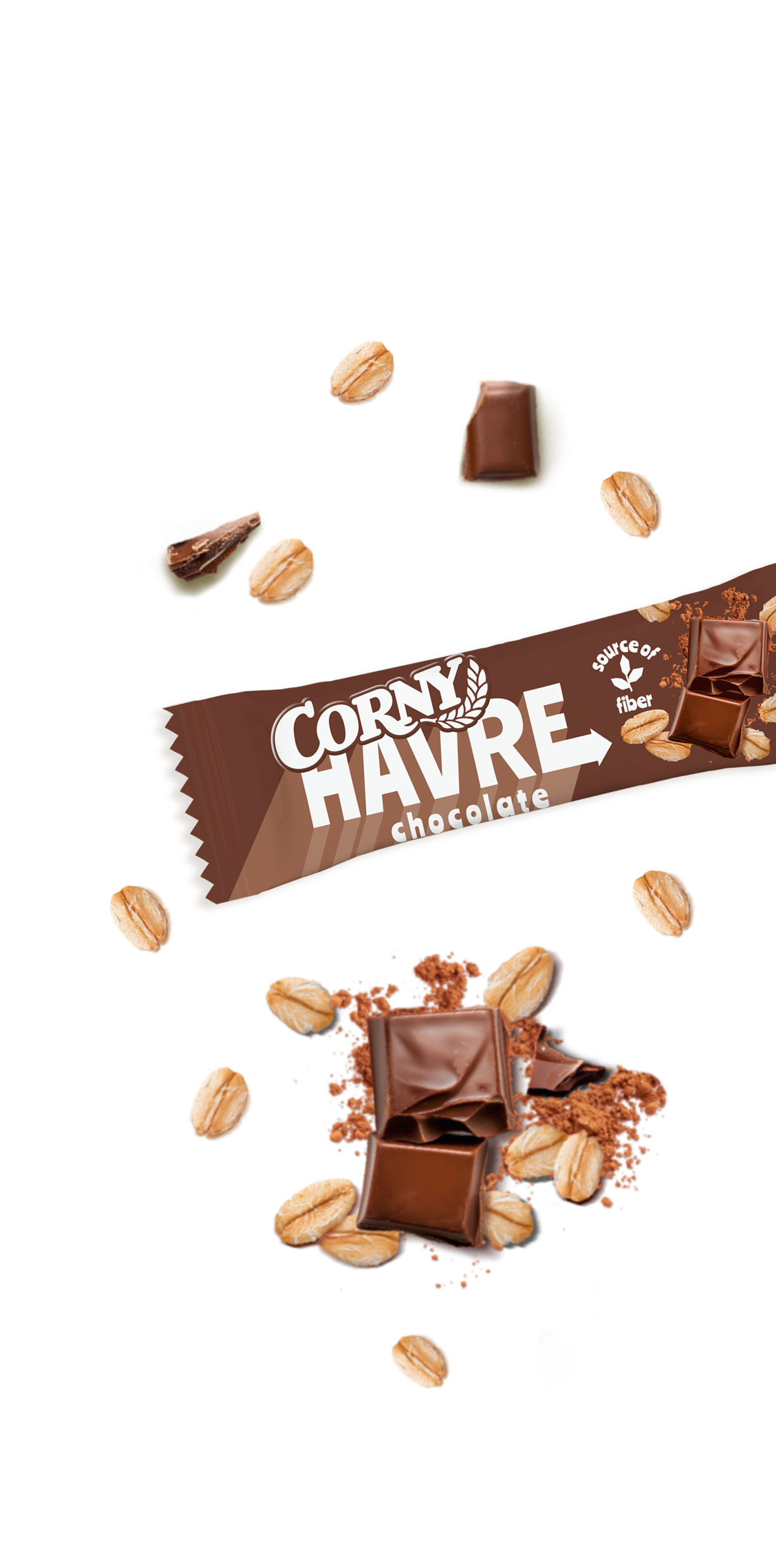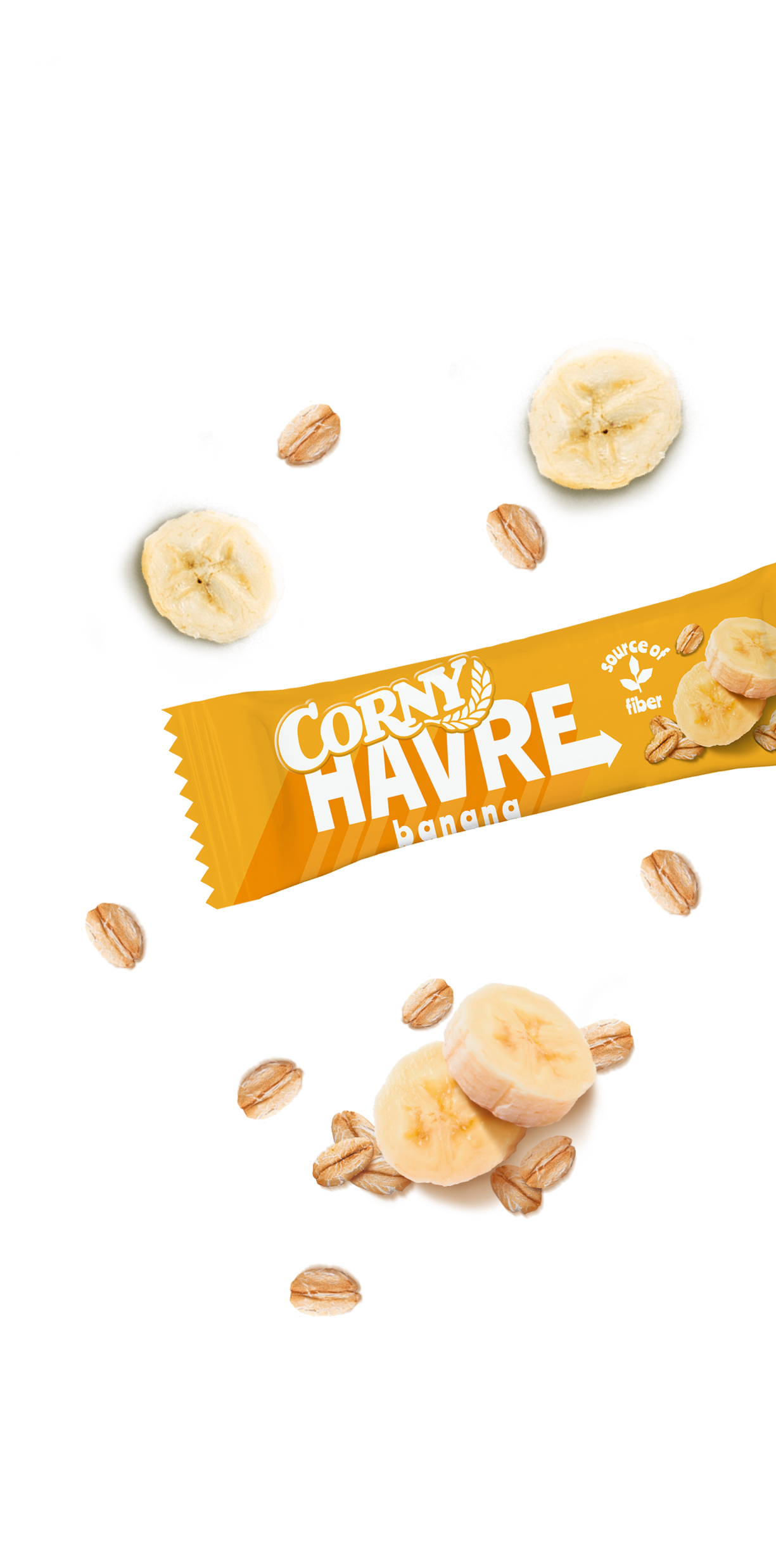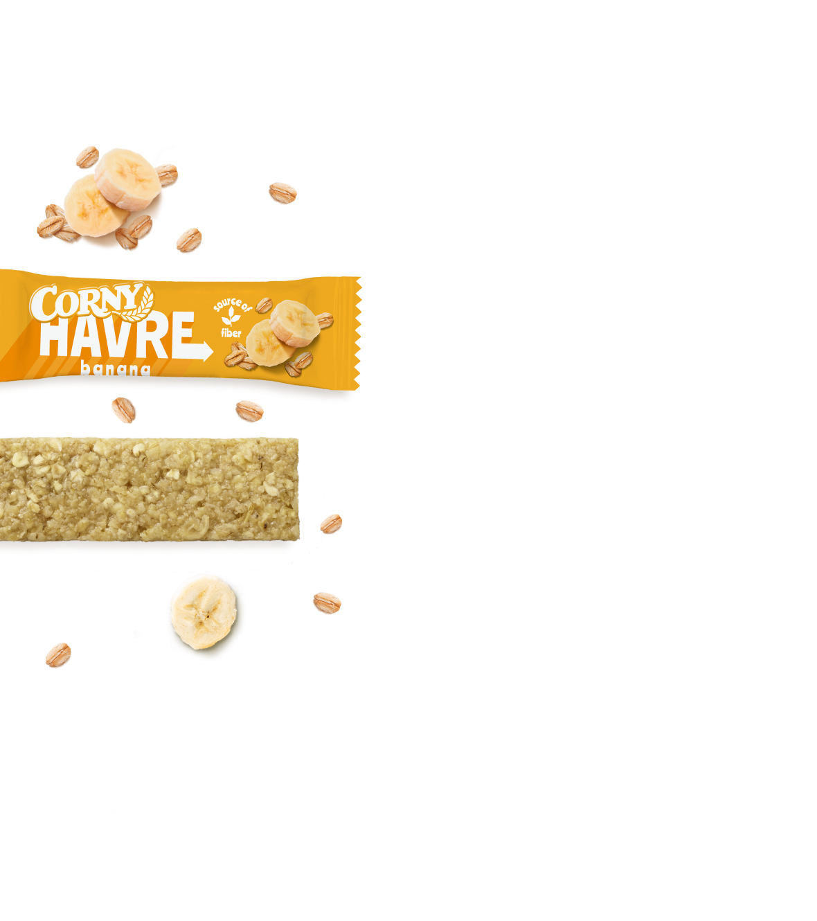 Corny Havre är ett perfekt snacks för dig som letar efter något som både mättar bra och smakar toppen. Barerna är mjuka, supergoda och fiberrika, de är nämligen laddade med fullkornsflingor av havre. Finns i två olika smaker, Chocolate och Banana, vilken blir din favorit?